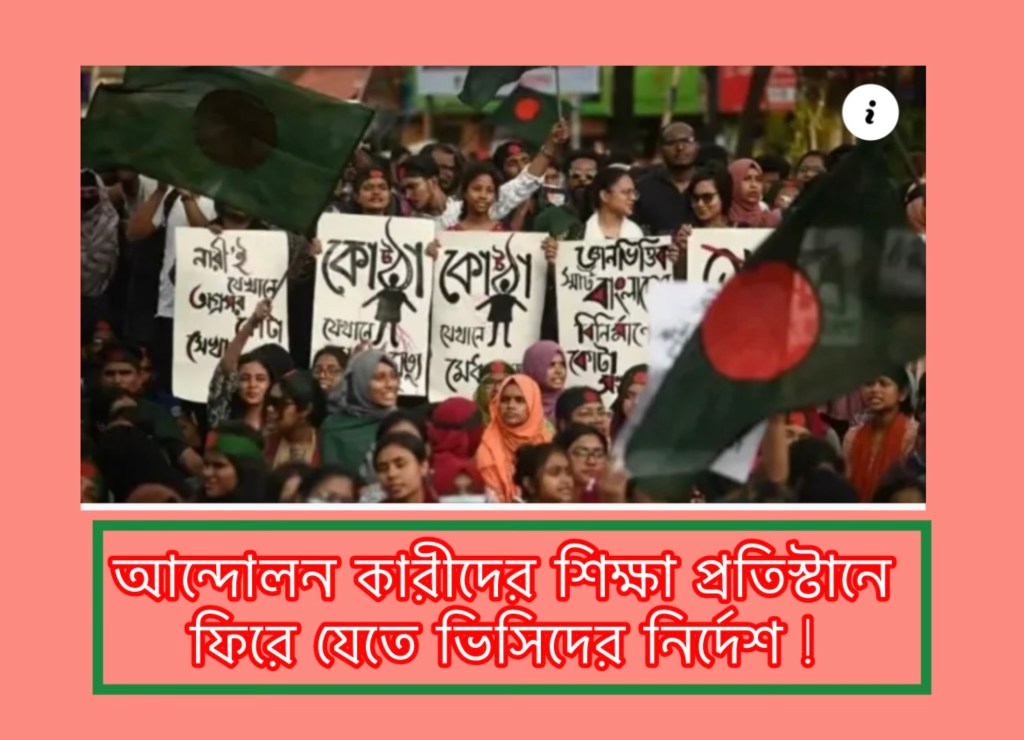 সরকারি চাকরির সব গ্রেডে কোটা প্রথাকে যৌক্তিক পর্যায়ে সংস্কার করতে আন্দোলন চলার মধ্যে শিক্ষার্থীদের ক্যাম্পাসে ফেরাতে এই নির্দেশনা এলো।