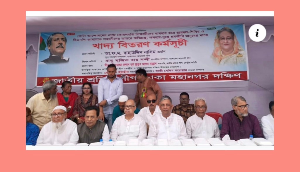সোমবার (২৯ জুলাই) দুপুরে ২৩ বঙ্গবন্ধু এভিনিউয়ে আওয়ামী লীগ কেন্দ্রীয় কার্যালয় প্রাঙ্গণে কোটা বিরোধী আন্দোলনের অভ্যন্তরে দেশব্যাপী বিএনপি-জামাত-শিবিরের সন্ত্রাস, অগ্নিসংযোগ, নৈরাজ্য, হত্যা, লুটপাট ও ভাংচুরে ক্ষতিগ্রস্ত নিম্ন আয়ের মানুষের মাঝে জাতীয় শ্রমিক লীগ, ঢাকা মহানগর দক্ষিণের উদ্যোগে খাদ্য বিতরণ অনুষ্ঠানে প্রধান অতিথির বক্তৃতায় তিনি এসব কথা বলেন।