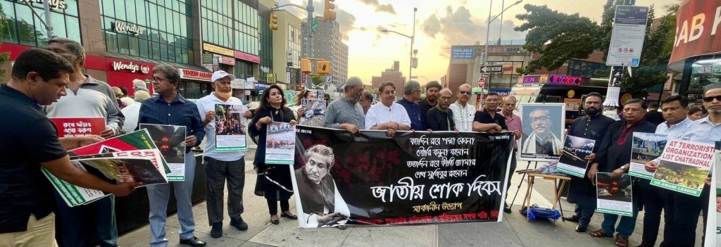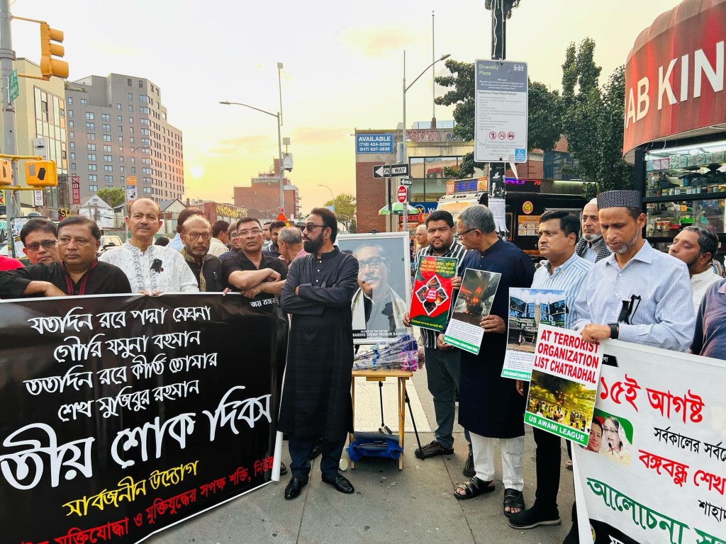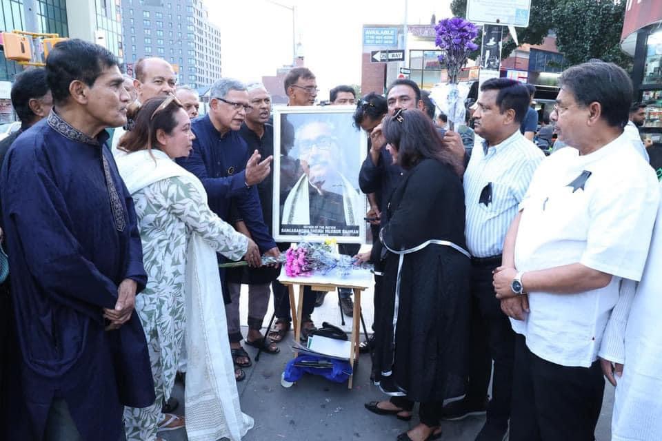 নিউইয়র্ক প্রতিনিধি ঃ নিউইয়র্কের জ্যাকশন হাইটসের ডাইভারসিটি প্লাজায় ১৫ আগষ্ট ২০২৪ বৃহস্পতিবার জাতীয় শোক দিবস পালন করা হয়েছে ।