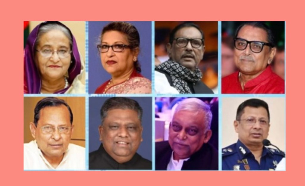 মামলায় উল্লেখিত আসামিরা হলেন- সাবেক প্রধানমন্ত্রী ও আওয়ামী লীগের প্রধান শেখ হাসিনা, তাঁর বোন শেখ রেহানা, আওয়ামী লীগের সাধারণ সম্পাদক ও সাবেক সেতুমন্ত্রী ওবায়দুল কাদের, সাবেক স্বরাষ্ট্রমন্ত্রী আসাদুজ্জামান খান কামাল, সাবেক পররাষ্ট্রমন্ত্রী হাছান মাহমুদ, সাবেক আইনমন্ত্রী আনিসুর রহমান, সাবেক প্রধানন্ত্রী শেখ হাসিনার উপদেষ্টা সালমান এফ রহমান, সাবেক সংসদ সদস্য কামরুল ইসলাম, সাবেক সংসদ সদস্য ও জাসদ সভাপতি হাসানুল হক ইনু, সাবেক সংসদ সদস্য ও ওয়ার্কার্স পার্টির সভাপতি রাশেদ খান মেনন, সাবেক আইজিপি আব্দুল্লাহ আল মামুন, সাবেক ডিবি প্রধান হারুন-অর-রশিদ, ঢাকা মেট্রোপলিটন পুলিশের সাবেক অতিরিক্ত বিপ্লব কুমার, সাবেক ডিএমপি কমিশনার হাবিবুর রহমান, সাবেক প্রবাসীকল্যাণ প্রতিমন্ত্রী শফিকুর রহমান চৌধুরী, সিলেট সিটি করপোরেশনের সাবেক মেয়র আনোয়ারুজ্জামান চৌধুরী, সিলেট-৩ আসনের সাবেক সংসদ সদস্য হাবিবুর রহমান হাবিব, সাবেক সংসদ সদস্য শফিউল আলম চৌধুরী নাদেল, সিলেট জেলা পরিষদের সদ্য সাবেক চেয়ারম্যান ও জেলা আওয়ামী লীগের সাধারণ সম্পাদক অ্যাডভোকেট নাসির উদ্দিন খান, ওসমানী নগর উপজেলা পরিষদের সাবেক চেয়ারম্যান শামীম আহমদ ওরফে ভিপি শামীম, সিলেট জেলা স্বেচ্ছাসেবক দলের সভাপতি আফসার আজিজ, বিয়ানীবাজার উপজেলা পরিষদের সদ্য সাবেক চেয়ারম্যান আবুল কাশেম পল্লব, সিলেট সিটি করপোরেশনের কাউন্সিলর আজাদুর রহমান আজাদ, ৩২ নম্বর ওয়ার্ড কাউন্সিলর রুহেল আহমদ, সিলেট জেলা স্বেচ্ছাসেবক লীগের সহ সভাপতি পিযুষ কান্তি দে, সিলেট মহানগর ছাত্রলীগের সভাপতি কিশওয়ার জাহান সৌরভ, সাধারণ সম্পাদক নাইম আহমদ, সিসিকের পিআরও সাজলু লস্কর, ৭ নম্বর ওয়ার্ডের সাবেক কাউন্সিলর আফতাব হোসেন খান, আফতাবের সহযোগী পাঙ্গাস, মহানগর আওয়ামী লীগের যুগ্ম সাধারণ সম্পাদক বিধান কুমার সাহা, রুহুল আমিন শিবলু (৩৫), সিলেট জেলা ছাত্রলীগের সভাপতি নাজমুল ইসলাম, সাধারণ সম্পাদক রাহেল সিরাজ, মহানগর আওয়ামী লীগ সদস্য কামরান আহমদ, ৫ নম্বর ওয়ার্ড কাউন্সিলর রেজওয়ান আহমদ, জাসদের কেন্দ্রীয় যুগ্ম সম্পাদক লোকমান আহমদ, ৩৫ নম্বর ওয়ার্ড কাউন্সিলর জাহাঙ্গীর আলম, সিলেট চেম্বার অব কমার্স অ্যান্ড ইন্ডাস্ট্রির সভাপতি তাহমিন আহমদ, স্বেচ্ছাসেবক লীগ সাধারণ সম্পাদক দেবাংশু দাস মিটু, মহানগর ছাত্রলীগের সাবেক সাধারণ সম্পাদক আব্দুল আলিম তুষার, মহানগর আওয়ামী লীগের যুগ্ম সম্পাদক জুবের খান, মহানগর যুবলীগের সভাপতি আলম খান মুক্তি, সাধারণ সম্পাদক মুশফিক জায়গীরদার, সাংগঠনিক সম্পাদক এম ইলিয়াছুর রহমান দিনার, সিলেট মহানগর পুলিশের সদ্য সাবেক অতি উপকমিশনার (উত্তর) আজবাহার আলী শেখ, সহকারী পুলিশ কমিশনার মিজানুর রহমান, অতিরিক্ত পুলিশ সুপা