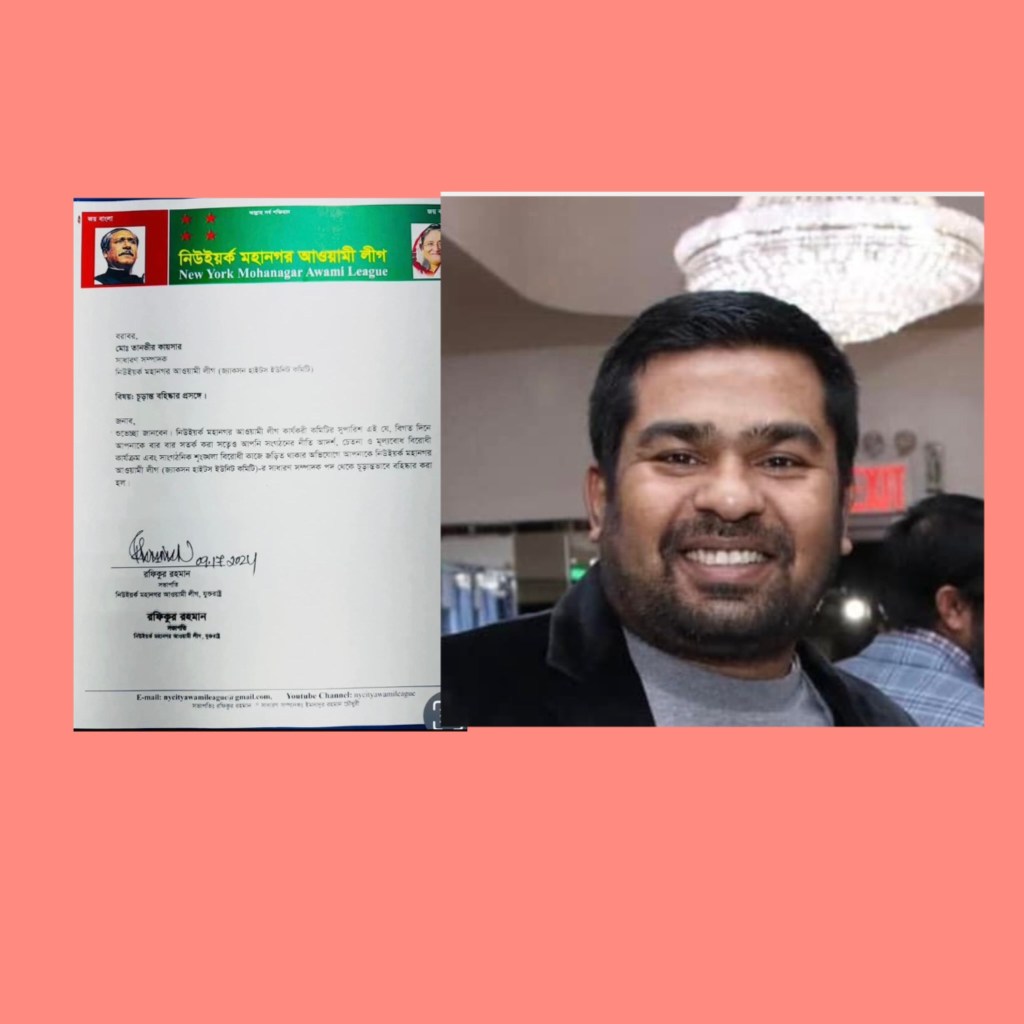নিউইয়র্ক প্রতিনিধি ঃ বাংলাদেশের সাবেক প্রধানমন্ত্রী ও আওয়ামীলীগ সভাপতি শেখ হাসিনার সাথে ফোন কলে কথা বলা ও পরবর্তিতে ঐ কল রেকর্ড ফেইসবুকে ভাইরাল করা সেই তানভীর কায়সার কে বহিঃস্কার করলো নিউইয়র্ক মহানগর আওয়ামীলীগ । আজ নিউইয়র্ক মহানগর আওয়ামীলীগের সভাপতি স্বাক্ষরিত এক প্রেস বিজ্ঞপ্তিতে তার বহিঃস্কারাদেশের কথা জানানো হয়েছে ।
