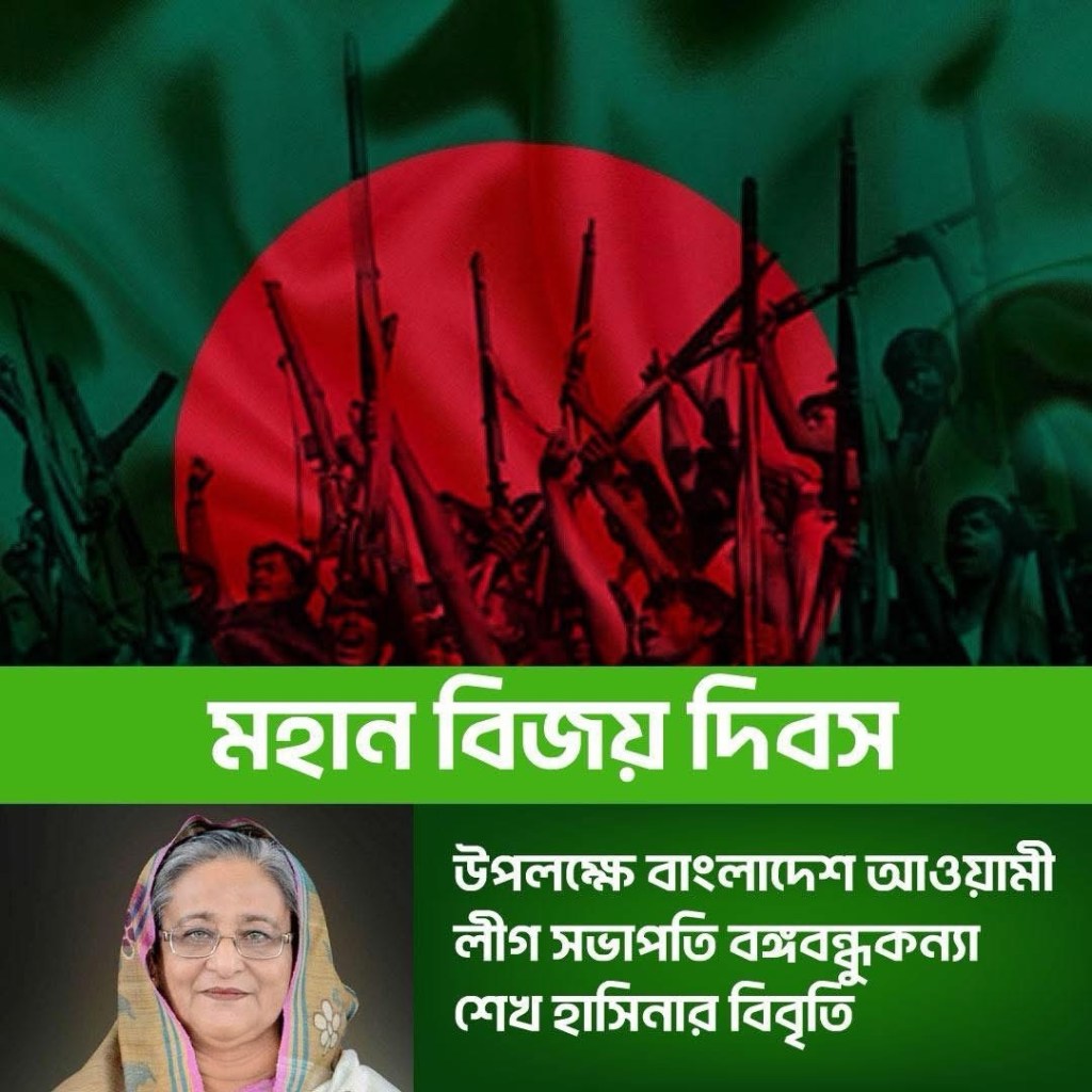 জাতীয়/ আন্তর্জাতিক ডেস্ক ঃ ১৬ ই ডিসেম্বর মহান বিজয় দিবস উপলক্ষে বাংলাদেশ আওয়ামীলীগের সভাপতি শেখ হাসিনা বাংলাদেশ আওয়ামীলীগের ব্যরিফাইড পেইজে জাতির উদ্দেশ্যে বিবৃতি দিয়েছেন।আমরা আমাদের পাঠকদের জন্য সেটি হুবহু তুলে ধরলাম ঃ