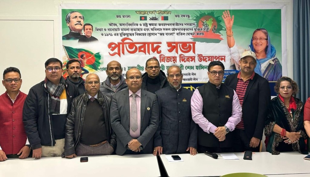 বাংলাদেশে আওয়ামী লীগের নেতাকর্মীদের ওপর নির্যাতন, হত্যাকাণ্ড, বাড়িঘরে লুটপাট-অগ্নিসংযোগ-ভাংচুর এবং আওয়ামী লীগ সভানেত্রী শেখ হাসিনাসহ লাখ লাখ নেতা-কর্মীদের নামে মিথ্যা মামলা ও গণগ্রেপ্তারের প্রতিবাদে জুরিখে বিক্ষোভ সমাবেশ করেছে সুইজারল্যান্ড আওয়ামী লীগ।