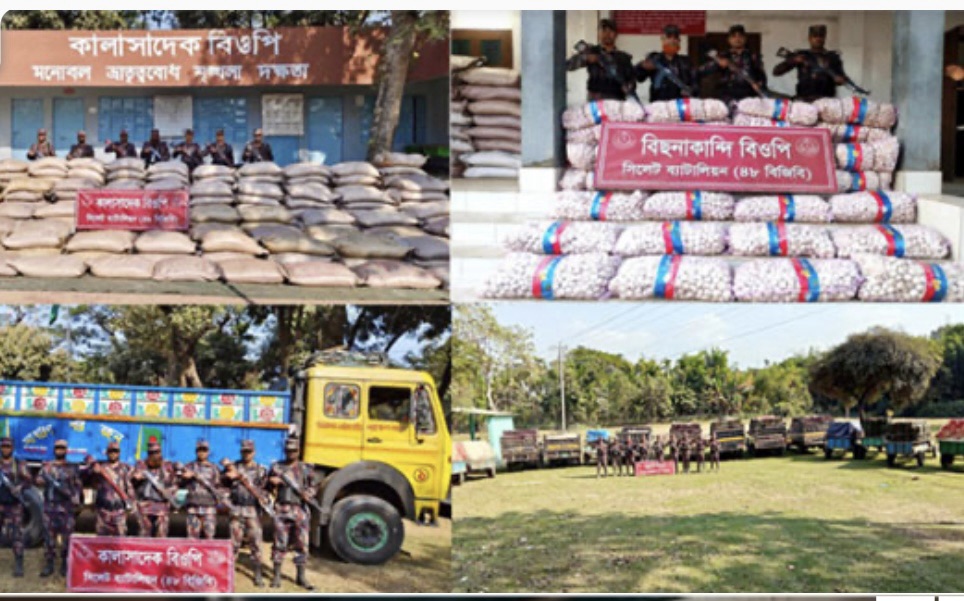 বিজ্ঞপ্তিতে বলা হয়, বিজিবি সিলেট ও সুনামগঞ্জ জেলার সীমান্তবর্তী তামাবিল, সংগ্রাম, প্রতাপপুর, পান্থুমাই, শ্রীপুর, বিছনাকান্দি, কালাসাদেক, কালাইরাগ এবং বাংলাবাজার বিওপি কর্তৃক অভিযান পরিচালনা করে বিপুল পরিমান ভারতীয় কমলা, চিনি, মহিষ, মেলনোর স্কিন ক্রিম, আইবল ক্যান্ডি, অলিভ ওয়েল, মদ, ফেন্সিডিল, বাংলাদেশ থেকে পাচারকালে রসুন, কুইচা এবং চোরাচালানী মালামাল পরিবহনে ব্যবহৃত ট্রাক আটক করা হয়।