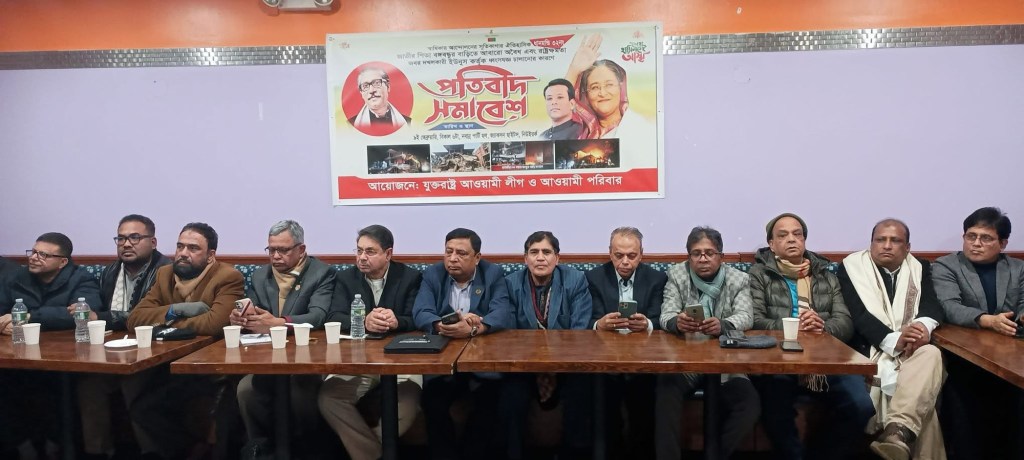 নিউইয়র্ক প্রতিনিধি ঃ বৈষম্যবিরেধী ছাত্র সংগঠনের নামে জামাত শিবিরের নেতাকর্মীদের দ্বারা ঐতিহাসিক ৩২নং জাতির জনক বঙ্গবন্ধু শেখ মুজিবুর রহমানের বাড়ি ভোল্ট রোজার দিয়ে বর্তমান অন্তর্বর্তীকালীন সরকার ও আইনশৃঙ্খলা বাহিনীর কোন রকম বাধা ছাড়াই ভেঙ্গে ফেলার প্রতিবাদে আজ নিউইয়র্কের জেকশন হাইটের নবান্ন পার্টি সেন্টারে এক সভা অনুষ্ঠিত হয় ।