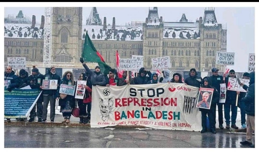 কানাডা প্রতিনিধি ঃ কানাডার মন্ট্রিয়ালভিত্তিক মানবাধিকার সংগঠন গ্লোবাল অ্যালায়েন্স অ্যাগেইনস্ট অ্যাট্রোসিটি অ্যাণ্ড ভায়োলেন্স অন হিউম্যানিটি (GA3VH) গত ৮ই এপ্রিল ২০২৫ তারিখে কানাডার সংসদ ভবনের সামনে একটি শান্তিপূর্ণ কিন্তু দৃঢ় প্রতিবাদ কর্মসূচির আয়োজন করেছে কানাডা প্রবাসি বাংলাদেশিরা ।