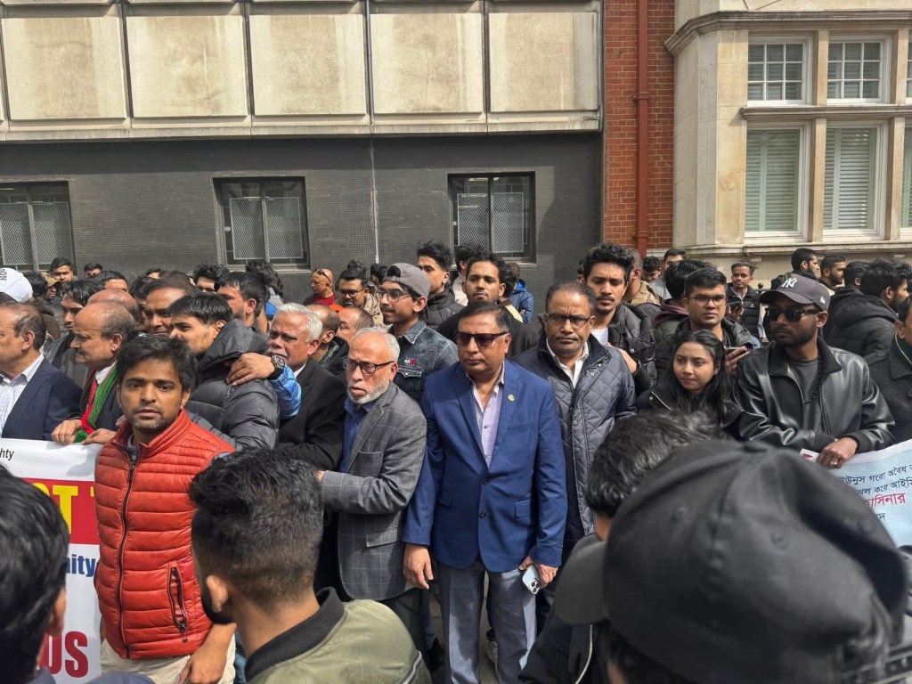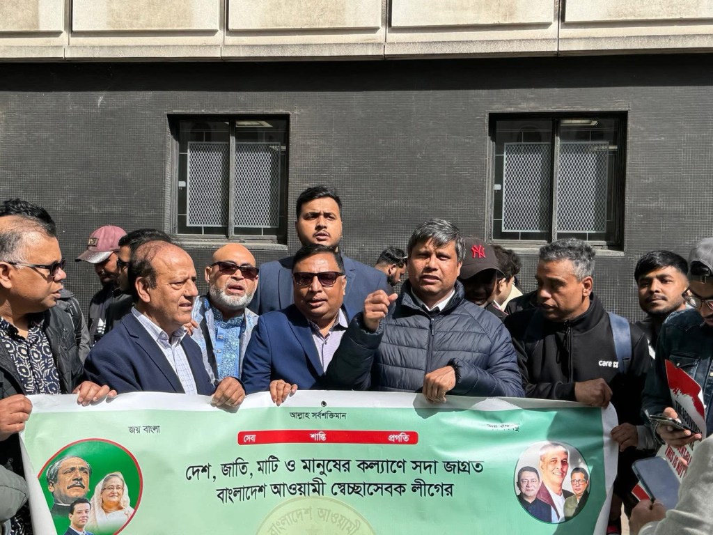 লন্ডন প্রতিনিধি ঃ বর্তমান অন্তর্বর্তীকালীন সরকার কর্তৃক আইসিটি ট্রাইব্যুনালে অসাংবিধানিক, বেআইনী ও প্রহসনমূলক শেখ হাসিনার বিপক্ষে মামলা দায়ের করার প্রতিবাদে লন্ডনস্থ বাংলাদেশ হাইকমিশনের সামনে যুক্তরাজ্য আওয়ামী লীগ কর্তৃক আয়োজিত এক বিশাল বিক্ষোভ সমাবেশ অনুষ্ঠিত হয়।