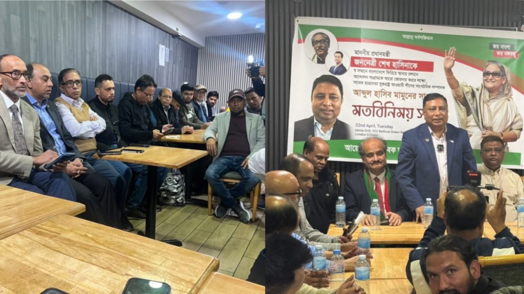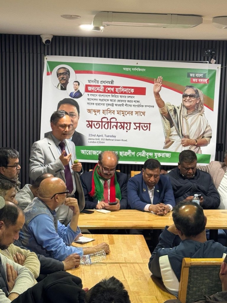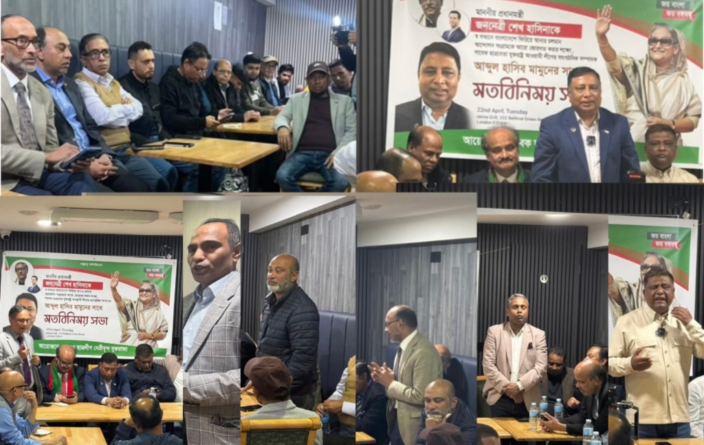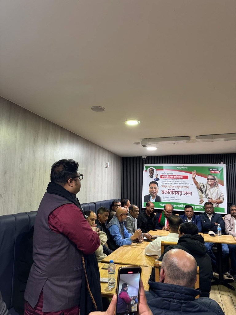 গতকল্য মঙ্গলবার যুক্তরাজ্য সফররত সিলেট এম সি বিশ্ববিদ্যালয় কলেজ ছাত্রলীগের সাবেক সভাপতি ও যুক্তরাষ্ট্র আওয়ামীলীগের সাংগঠনিক সম্পাদক বিশিস্ট কমিউনিটি নেতা সিলেটের কৃতি সন্তান আব্দুল হাসিব মামুনের সাথে লন্ডন সিটির বেথনাল গ্রীন এলাকায় জান্নাহ গ্রীল রেস্টুরেন্টে বাংলাদেশের প্রধানমন্ত্রী ও বাংলাদেশ আওয়ামী লীগের সংগ্রামী সভাপতি বঙ্গবন্ধু কন্যা জননেত্রী দেশরত্ন শেখ হাসিনাসহ নেতাকর্মীদের বিরুদ্ধে ষড়যন্ত্রমূলক মিথ্যা মামলা প্রত্যাহার ও আইসিটি ট্রাইবুনালে সকল অবৈধ বিচার প্রক্রিয়া বাতিল ,মব জাস্টিসের নামে খুন খারাফি বন্ধের দাবিতে এবং মাননীয় প্রধানমন্ত্রী জননেত্রী শেখ হাসিনাকে স্ব সম্মানে দেশে ফিরিয়ে আনার চলমান আন্দোলন সংগ্রামকে আরও জোরদার করার লক্ষ্যে মত বিনিময় সভা ।