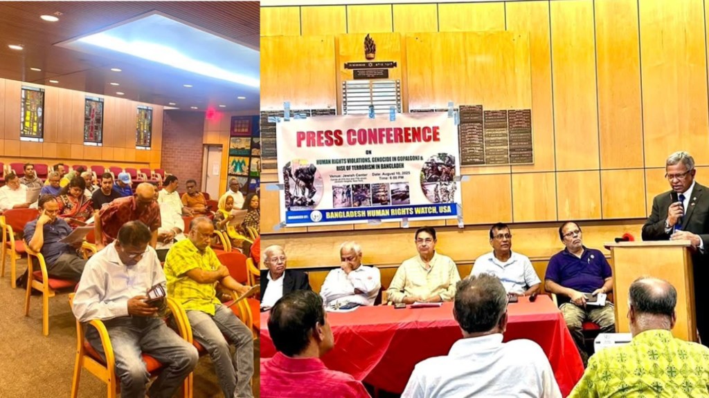 নিউইয়র্ক প্রতিনিধি ঃ বাংলাদেশ হিউমান রাইটস ওয়াচ ইউএসএ আয়োজিত এক জনাকীর্ণ সংবাদ সম্মেলনের অনুষ্ঠিত হয় জ্যাকসন হাইটসের জুইশ সেন্টারে । বাংলাদেশের চলমান সহিংসতা, মব ভায়োলেন্স, চরম মানবাধিকার লঙ্ঘন, সন্ত্রাস ও জঙ্গিবাদ এর উত্থান, গোপালগঞ্জের গণহত্যায় সামরিক বাহিনীর ভূমিকা ইত্যাদি বিষয় নিয়ে প্রিন্ট ও ইলেকট্রনিক মিডিয়ার সাংবাদিকদের সামনে লিখিত বক্তব্য, ডকুমেন্ট্রি উপস্থাপন ও দখলদার অবৈধ ইউনুস সরকারের অপকর্মের দলিল পেনড্রাইভের মাধ্যমে হস্তান্তর করা হয়। এরপর সাংবাদিকবৃন্দের প্রশ্নোত্তর পর্ব অনুষ্ঠিত হয় ।